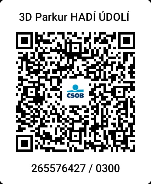 Čeká Vás nenáročný parkur v malém údolíčku na rozhraní louky a lesa. Pokud nemáte off road, parkujte v blízkosti asfaltové cesty, cca 100 m od parkuru (u laviček a turistické stezky). Cca po 100 m chůze po nezpevněné cestě dorazíte na improvizovaný přístřešek s vitrínou, kde začíná parkur. Souřadnice 50.6020761N, 15.5583331E, nebo viz mapka níže. Dbejte, prosíme, pokynů uvedených v provozním řádu. Aktuální ceny za parkur naleznete na konci této stránky. Úhradu můžete provést v hotovosti na místě, nebo přes QR kód. Je preferována bezhotovostní platba.